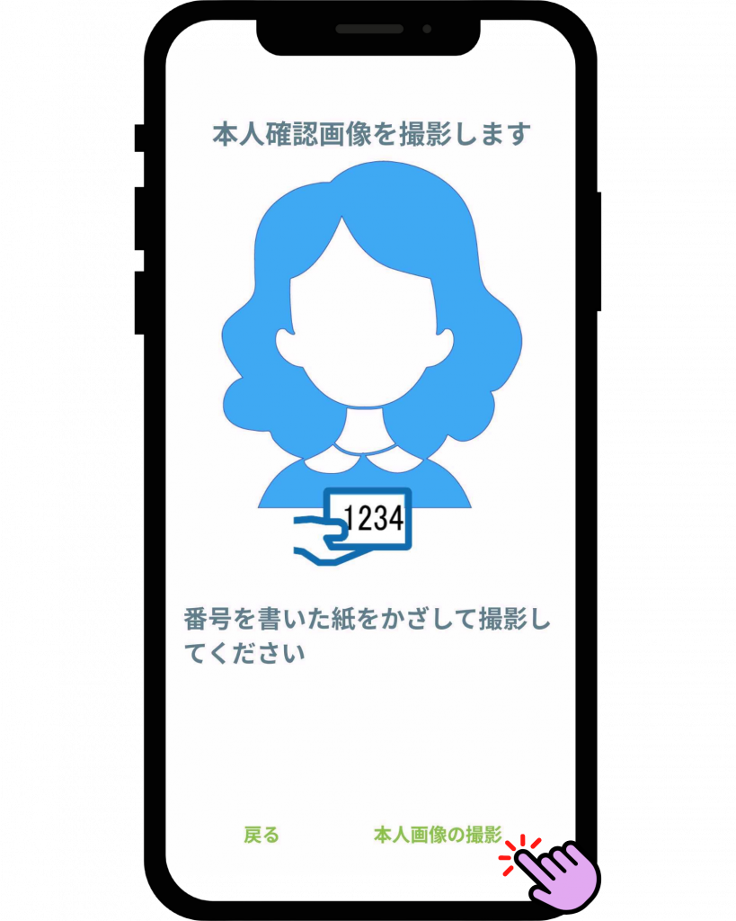 - 「顔の正面」と「番号メモ」を一緒に撮影します。