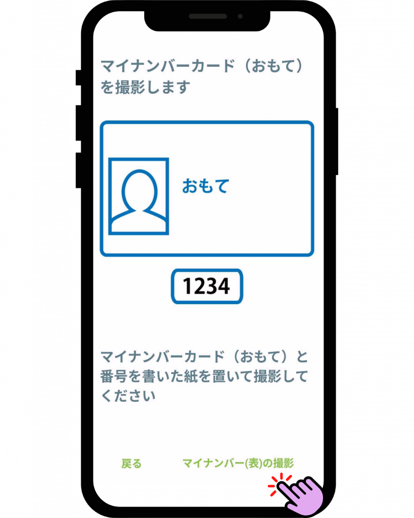 - 「マイナンバーカードの表面」と「番号メモ」を一緒に撮影します。