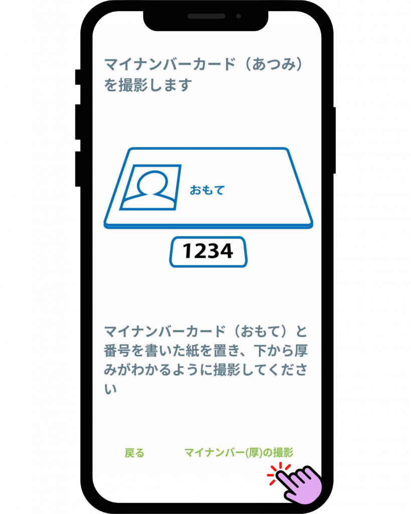 - 「マイナンバーカードの裏面」と「番号メモ」を一緒にマイナンバーカードの厚みが分かるように撮影します。